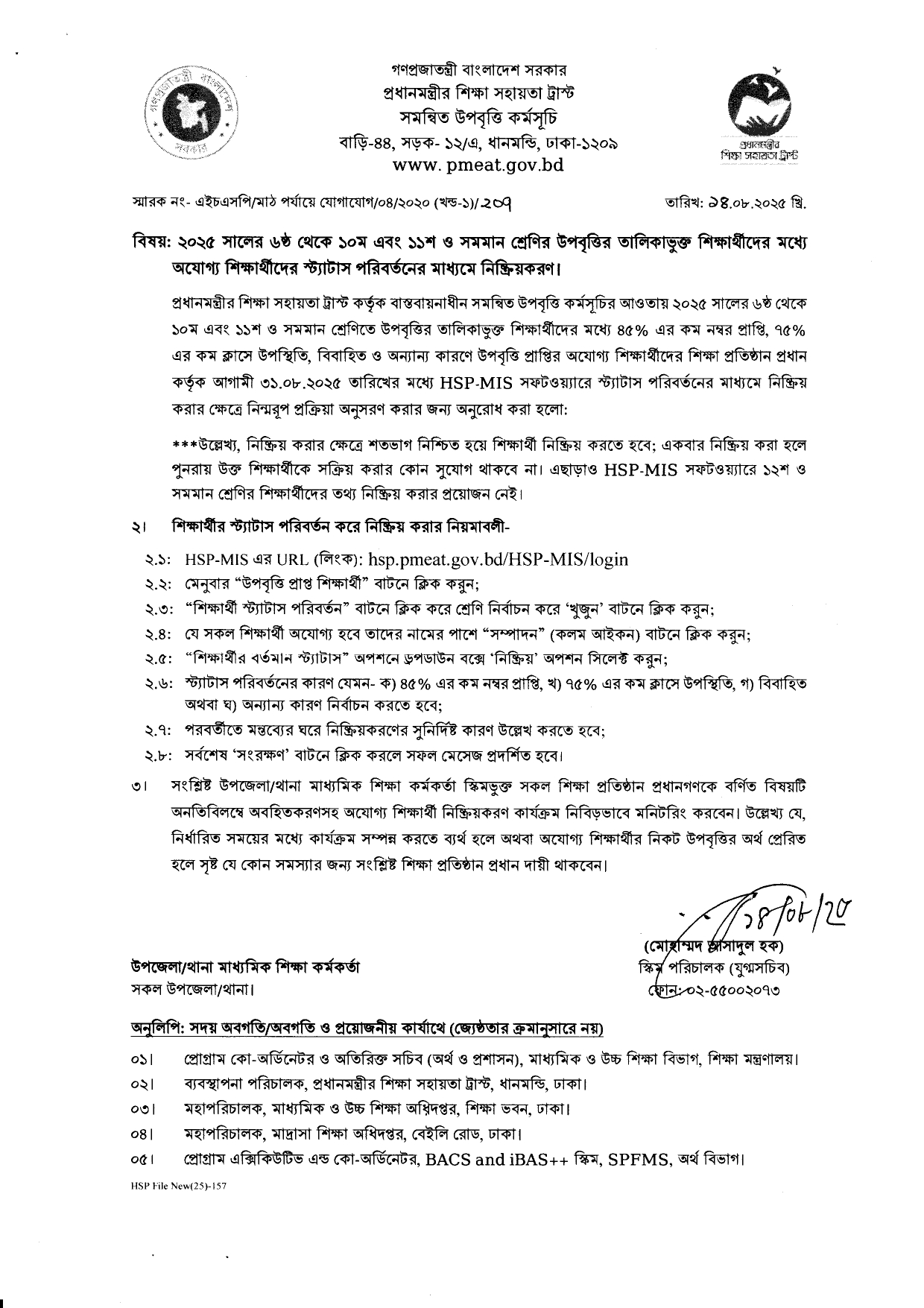 অধ্যয়নরত শিক্ষার্থীর তালিকা